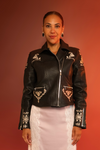 Chamara de piel bordada.