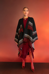 Poncho de tejido de punto con flequillos que aportan movimiento y estilo, mientras que su diseño cómodo y versátil le da un toque bohemio.